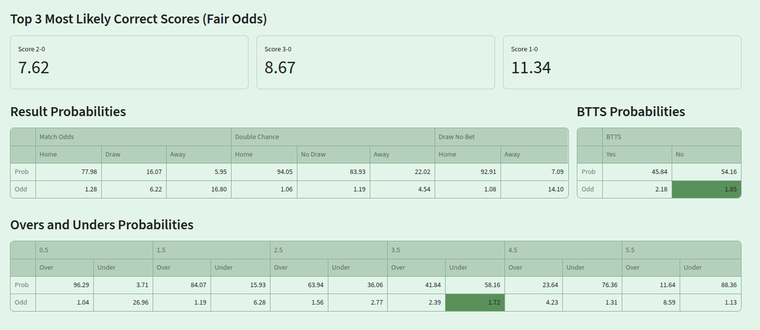 ✔ Over/Under Probabilities