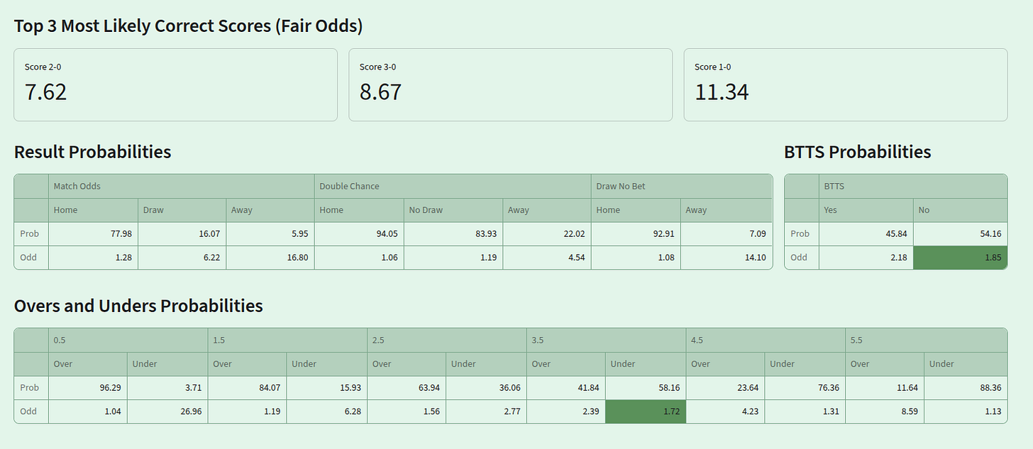 ✔ Match Outcome Probabilities
