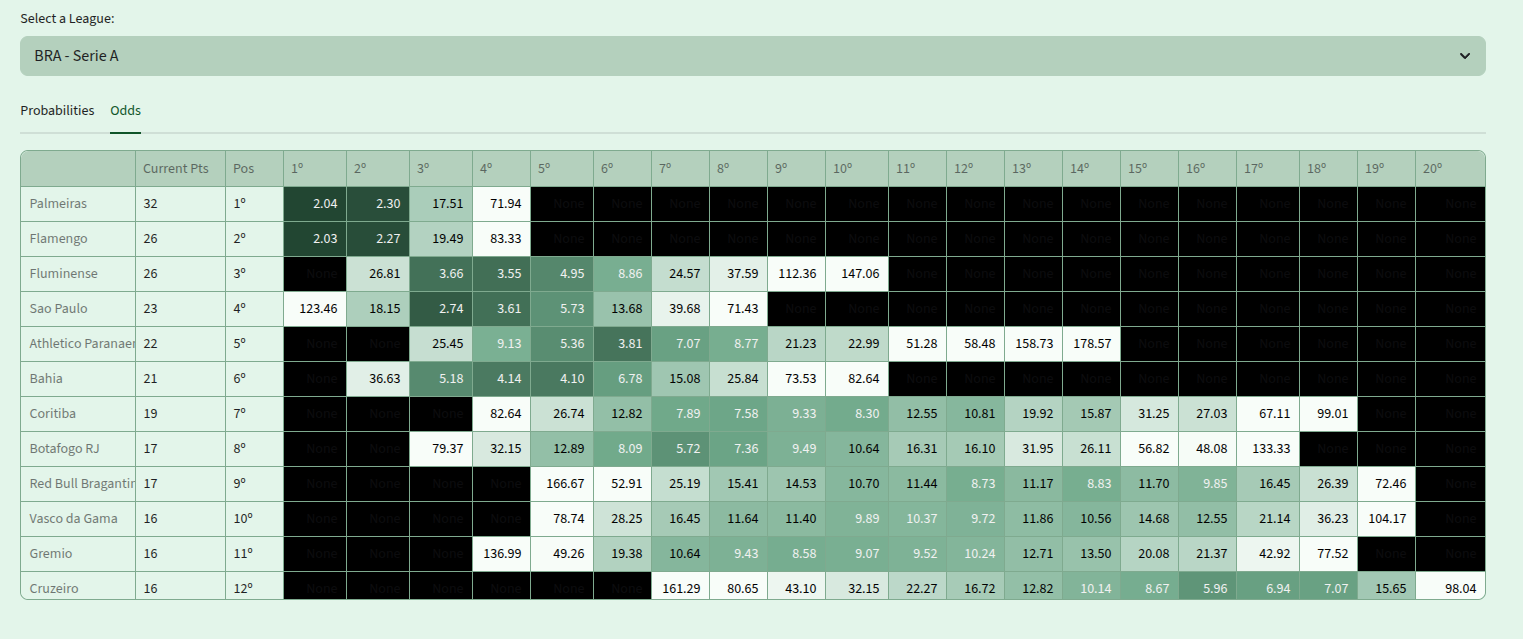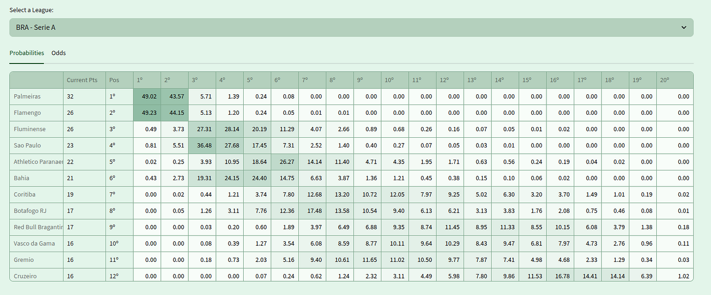 If you rely on structured probability models, the Brasileirão is arguably one of the best leagues in the world right now.