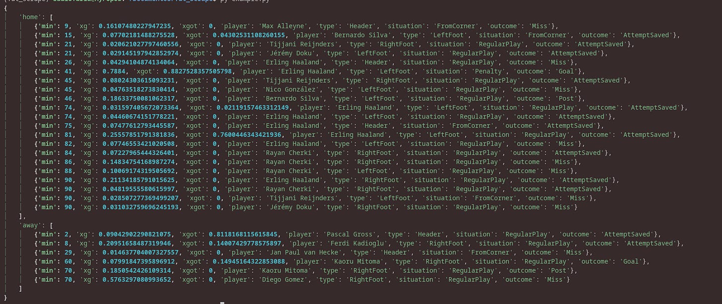 In the last article, we focused on extracting shot data from FotMob, transforming raw API responses into a structured Python dictionary containing information such as: