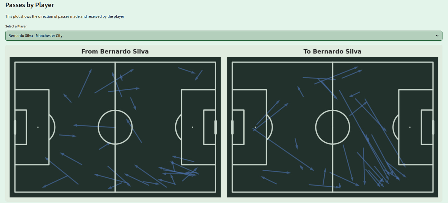 The images reinforce what the data indicates: City combined left-side progression with right-side amplitude, a classic positional-play mechanism to control space and tempo.