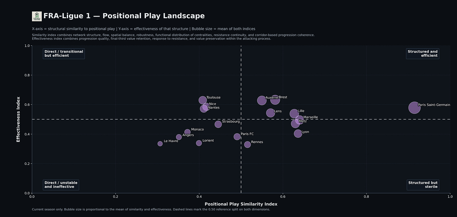 Positional Play Similarity Index → how closely a team’s structure aligns with positional principles