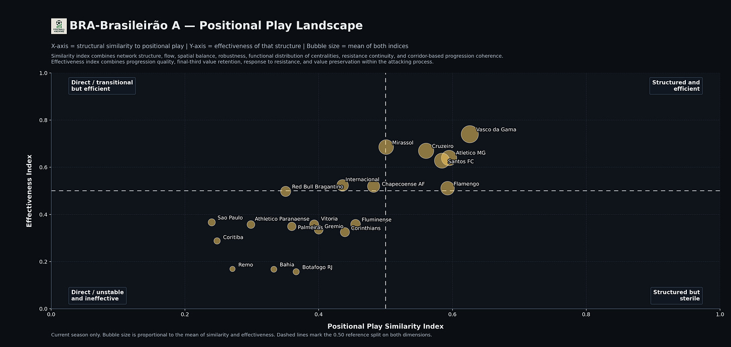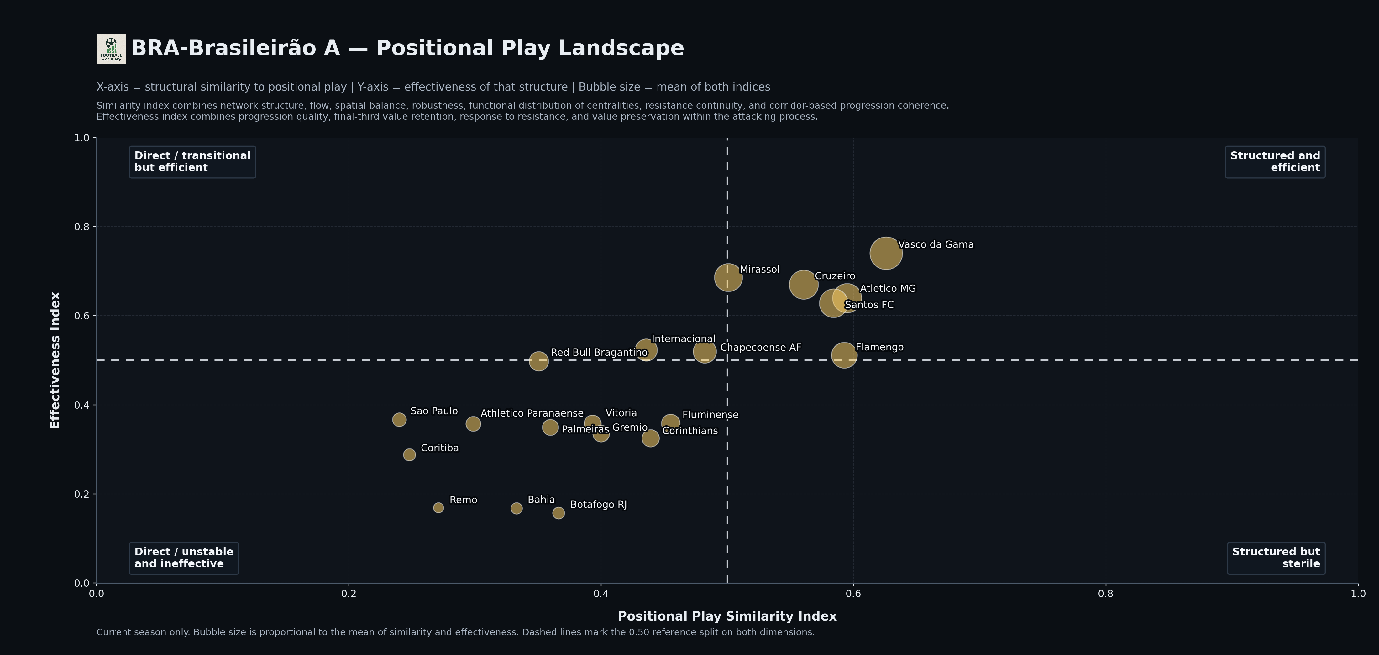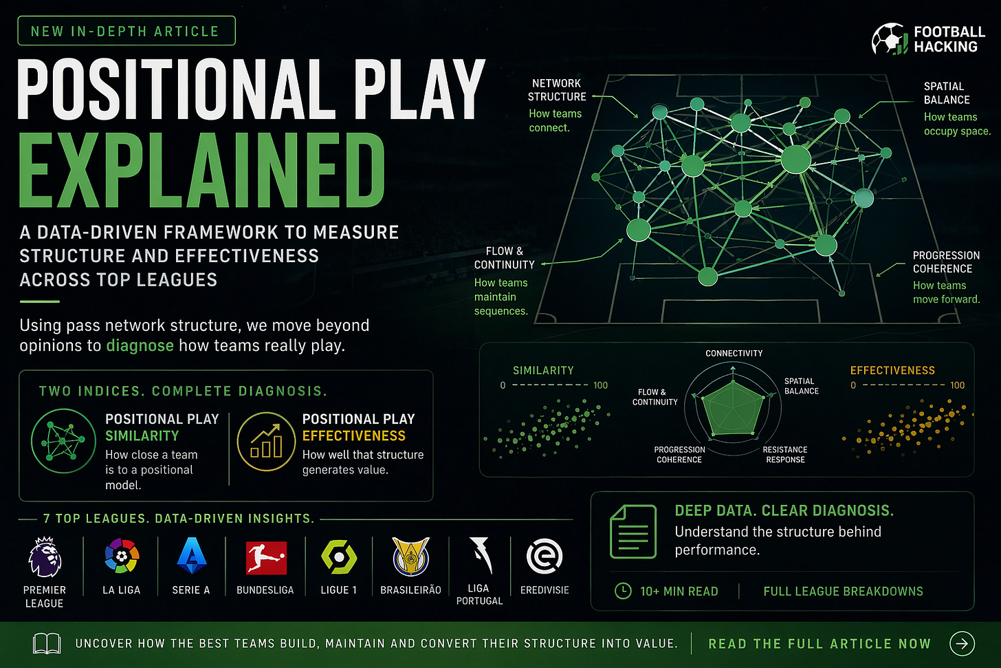 It was produced using pass network structure data, with the explicit goal of diagnosing whether teams behave like positional systems. Instead of relying on labels, we rely on structure.