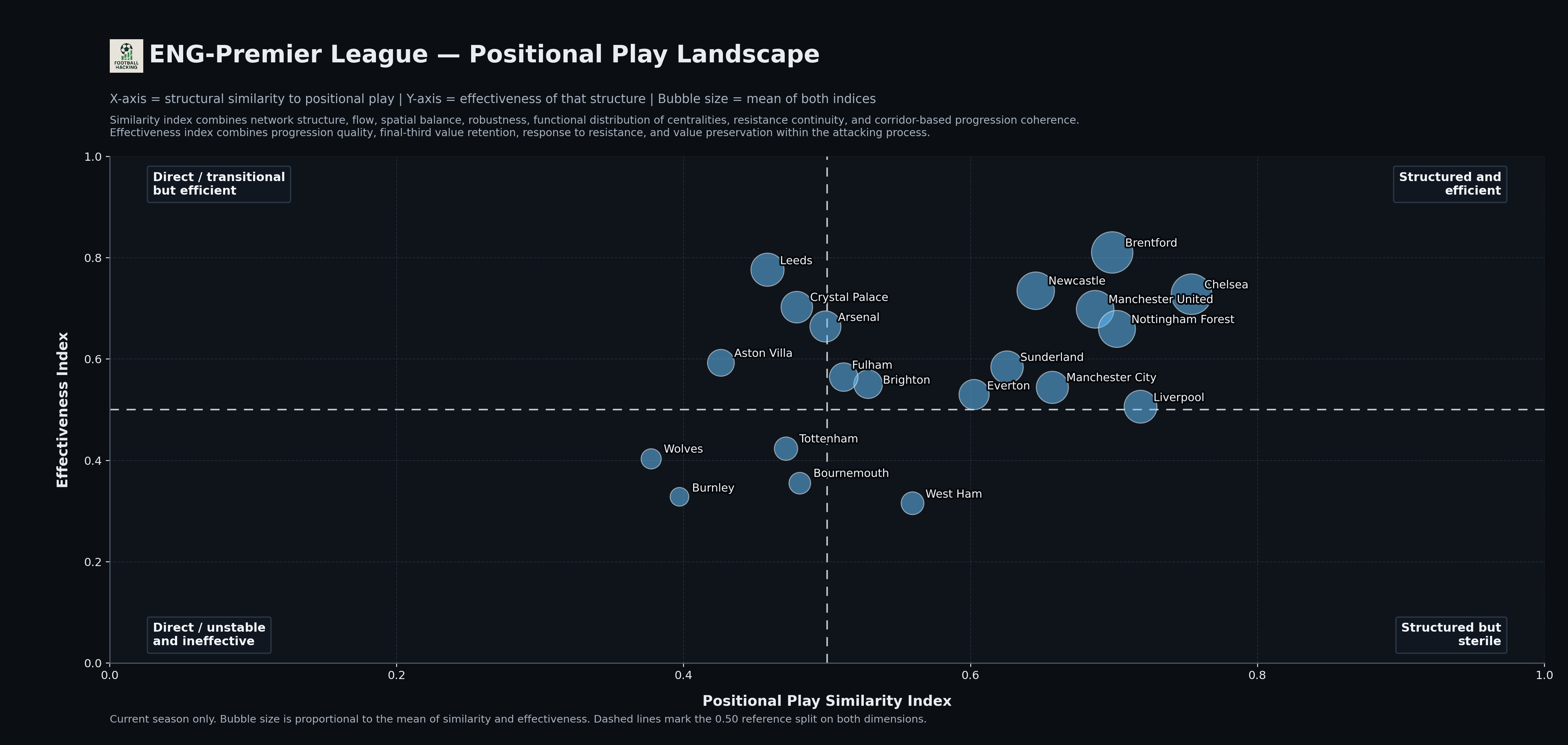 Positional Play Effectiveness Index → how well that structure translates into value during attacking sequences