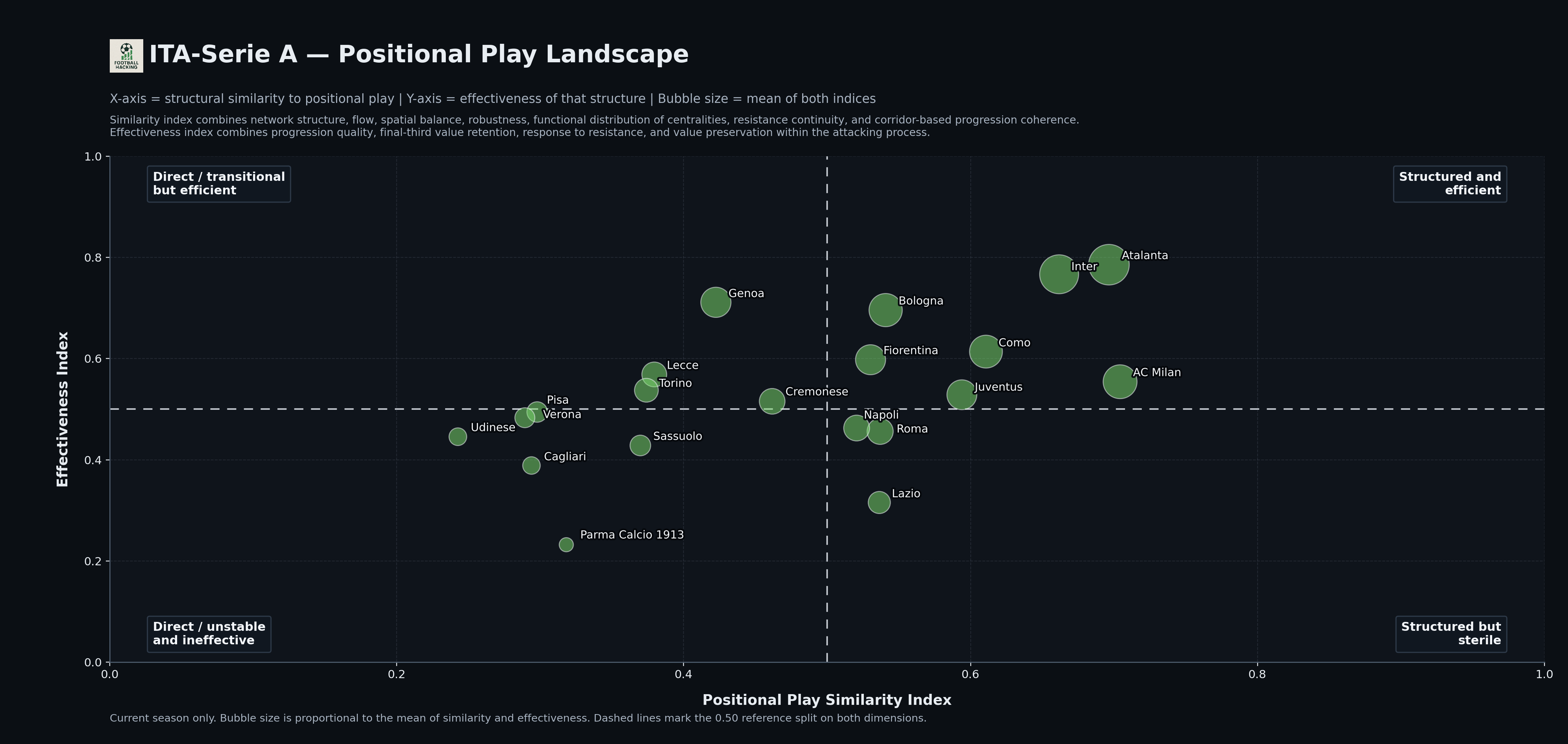 Serie A teams are structurally coherent, but often under-leverage that structure to generate threat.